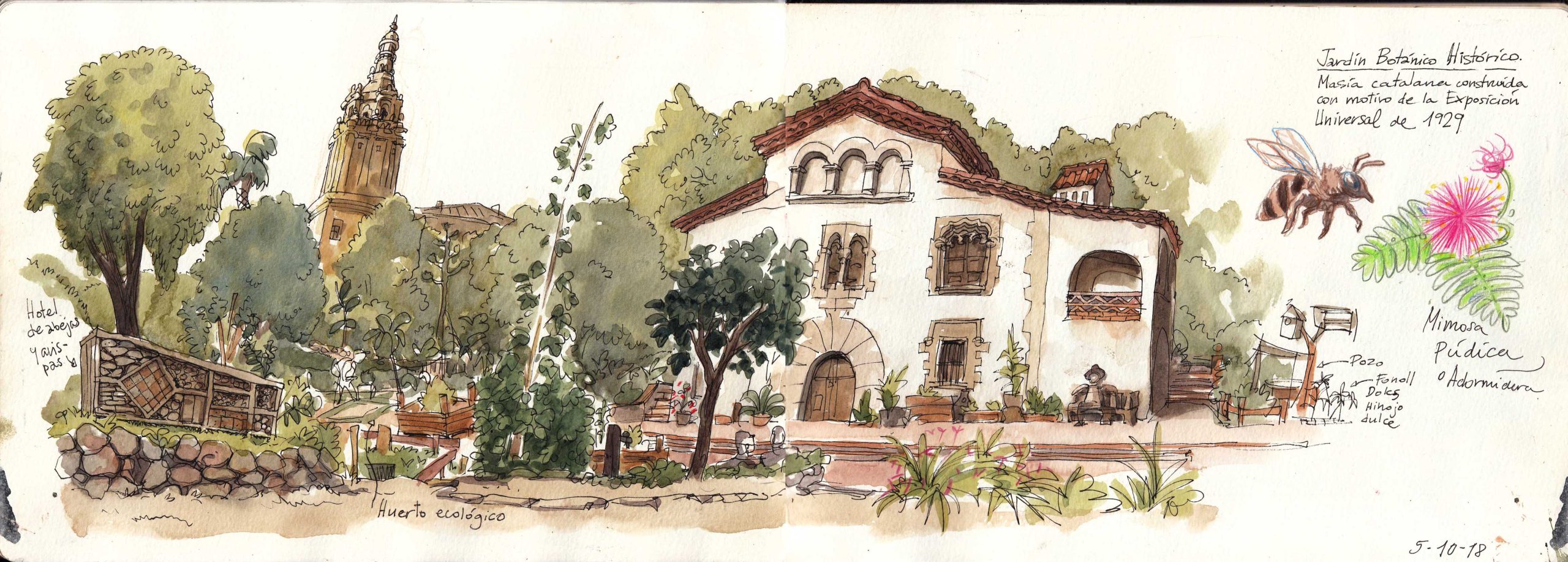 Herramientas: Cuaderno A4 o similar, lápiz de colores, acuarelas y rotuladores calibrados sobre cuaderno.
